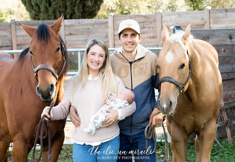 La famille, composée d’un papa, d’une maman, d’une grande sœur et de son petit frère de quelques jours à peine, a choisi de mettre en lumière l’arrivée du dernier-né au sein de leur foyer. Pour ce faire, ils ont opté pour un shooting photo chez eux à Sospel, entourées par les majestueux chevaux qui font partie intégrante de leur quotidien.