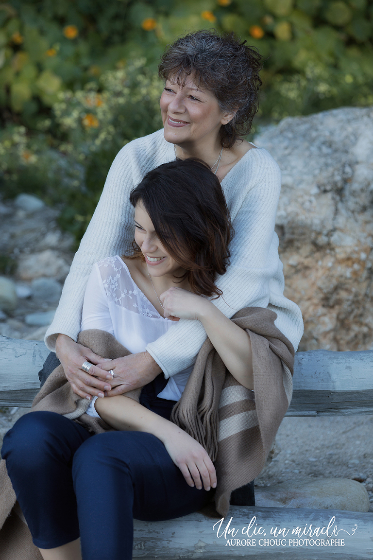 Je repère un endroit plus loin, où il n’y avait personne et où on serait protégé du vent. Idéal, pour que Christelle et Françoise sa maman, se sentent à l’aise et pose le plus naturellement sans être crispé des regards aux alentours.