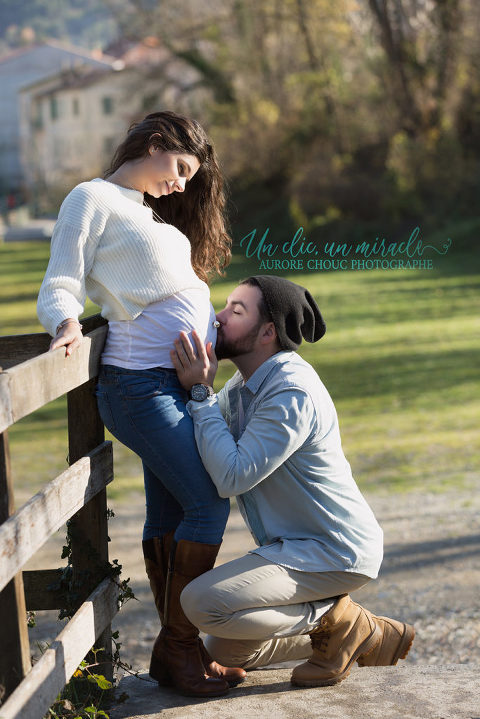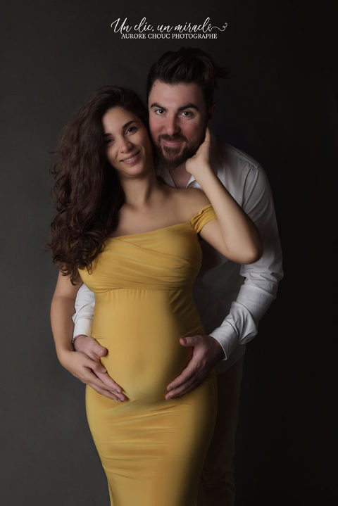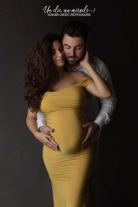 Quant aux tenues, ils préféraient mettre leurs vêtements, pour marquer encore plus le côté spontané et complice qu’ils dégageaient. C’est très rare que les futurs parents me demandent de réaliser des images comme celle-ci, mais ça leur correspond tellement bien et puis le but c’est d’avoir des images qui vous ressemblent.
