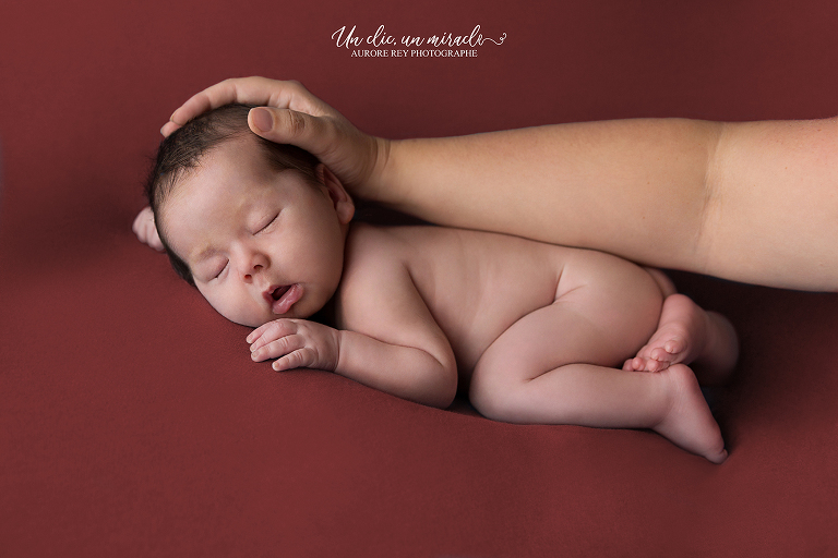 Ce petit bonhomme était en plein pic de croissance lors de sa séance photo, il était âgé d’un mois et 10 jours à ce moment-là. Entre chaque mise en scène, la pause tétée ou câlin était de rigueur. Chaque bébé a des besoins bien spécifiques, pour Malo, c’était le contact.