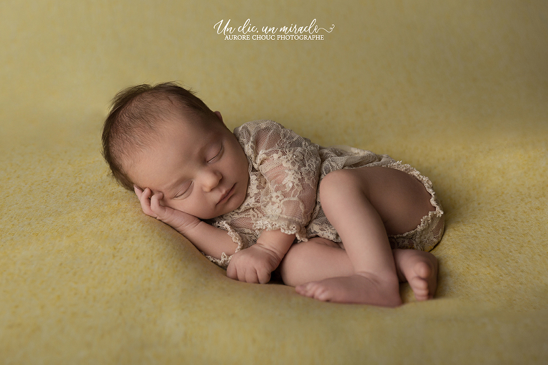 Après de longues minutes a essayer d’endormir ce joli bébé, elle finit par s’endormir sereinement. Et comme tout bébé qui se sent totalement relaxé au studio, elle me laisse une belle surprise sur le fond, pendant que je la photographié. Que tout le monde se rassure, on est passé à la mise en scène suivante, tandis que le fond beanbag et la tenue sont partis directement dans la machine à laver.